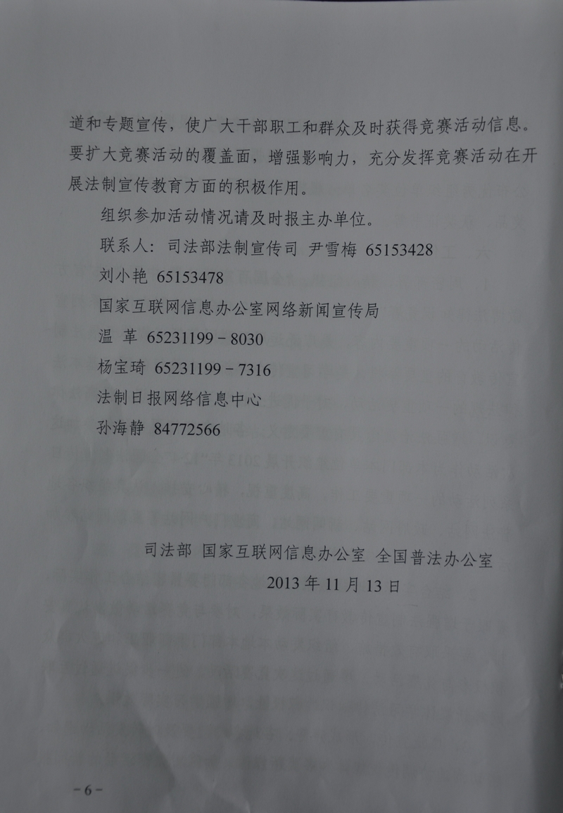 转发司法部、国家互联网信息办公室、全国普及法律常识办公室关于开展“全国百家网站暨‘中国普法’官方微博法律知识竞赛活动”的通知