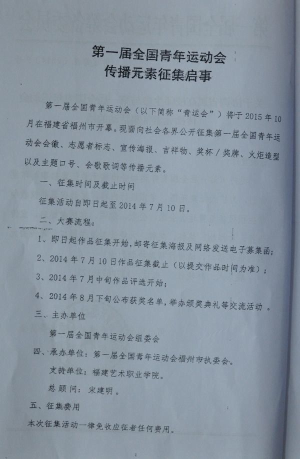 第一届全国青年运动会传播元素征集启事