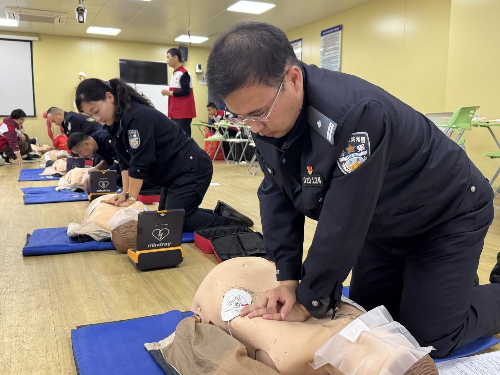 本次培训由学院组织部统筹,刑事科学技术系具体实施。参训教师需先完成线上理论学习与考核,方可进入线下实操环节。培训内容包括创伤包扎止血、心肺复苏术及自动体外除颤器(AED)使用等关键急救技能。省红十字会专业师资进行现场示范与指导,参训教师认真练习、积极考核,全员通过实操测试。