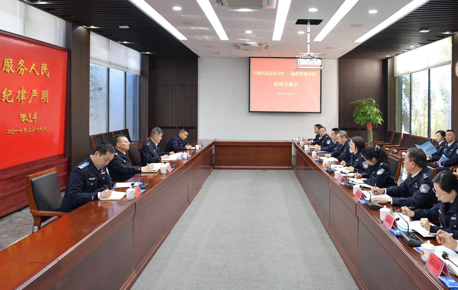 王轶校长对学院的热情接待表示感谢,并对学院在忠诚教育、专业建设、实战育人、国际培训等方面取得的突出成绩给予高度评价。他表示,当前公安高等教育正处于提质增效的关键阶段,部属院校与地方院校应进一步加强交流协作,共同探索适应新时代公安工作需要的人才培养模式,助力提升公安机关新质战斗力。双方围绕学科共建、师资交流、科研合作及硕士点培育等议题进行了深入研讨,并就建立常态化合作机制达成初步共识。